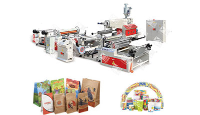 擠出涂布復合機、分切復卷機、切紙機和切紙機,廣泛應用于紙張(紙杯、紙袋、米包紙涂層、無菌包裝)、織物、箔、無紡布、PP編織等材料。